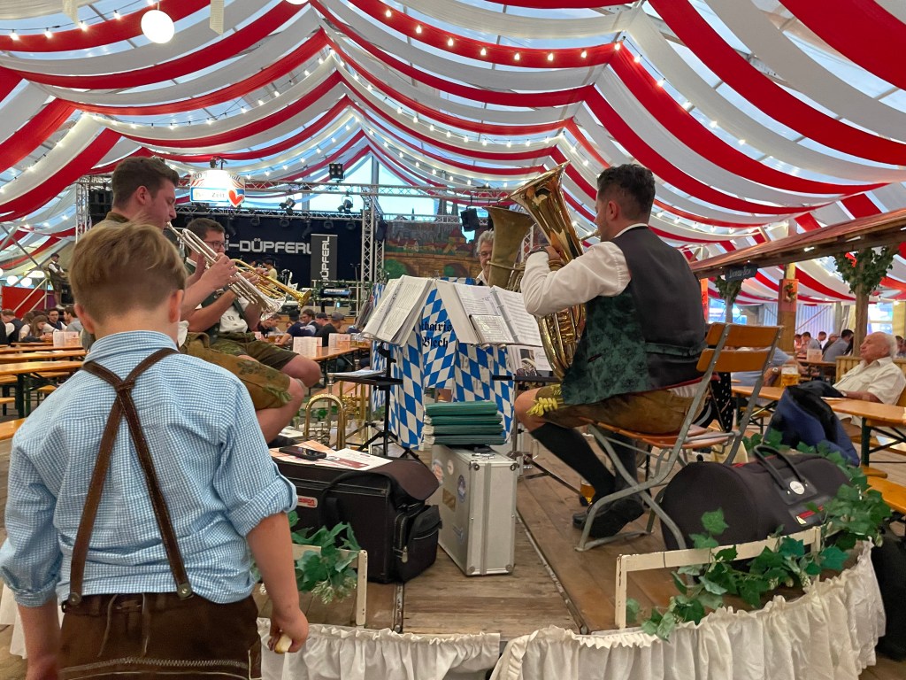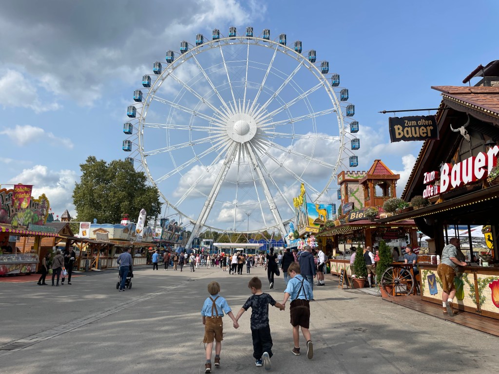 If you are operating under the belief that Oktoberfest is not for families, you are operating under a false belief. Yes, it’s absolutely true that you can party hard in a beer tent to the wee early morning hours. However, there is also a family-friendly side to Oktoberfest that becomes more apparent during the daytime hours, making it an ideal excursion for families with children. We’ve taken our kids to countless Fall and Spring German fests in various locations across Germany, and we have always had a great time with them. The festivities at Oktoberfest can indeed be enjoyable for visitors of all ages. You just need to keep in mind a couple of things to ensure a great day for everyone involved.