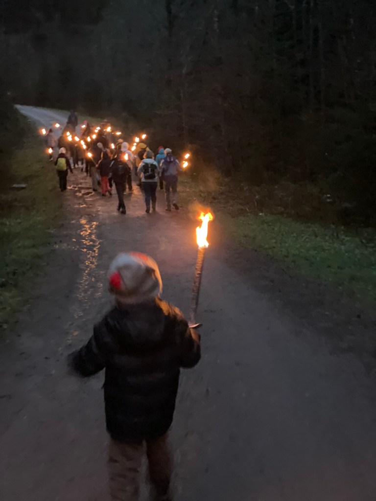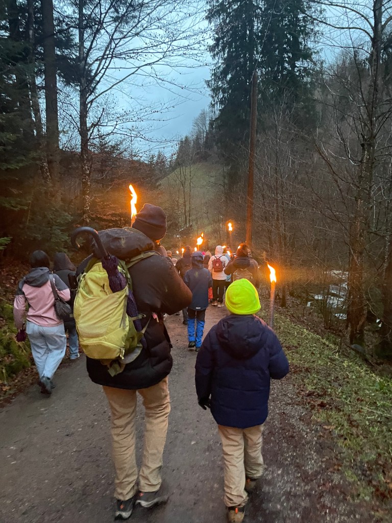 For our family, hiking under torchlight, enjoying the magical market for a couple hours and a short bus ride back to the train station felt relaxed, festive and was not too difficult to manage for anyone (or any age). When we reserved the torchlight hike, we assumed that our kids (ages 5 and 7) would not be allowed to carry their own torches. However, to our surprise, the hike leaders were fine with all participants carrying a torch. We thoroughly enjoyed the growing smiles on their faces when they were handed their very own torch to light and carry for the evening hike.
