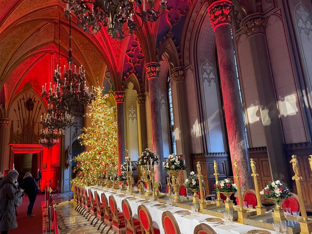 Burg Hoenzellern, located approximately 1 hour southwest of Stuttgart, decorates several rooms in their castle for the holidays, and has a Christmas laser light show choreographed to music that takes place in the castle’s courtyard once it’s dark. The courtyard has various stands with typical Christmas market food and refreshments.