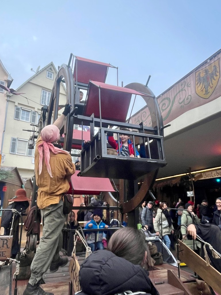 The quaint city of Esslingen offers the best medieval Christmas market for kids, hands down. The already gorgeous aldstadt transforms into a medieval Christmas market to offer a variety of medieval inspired kids rides, games and experiences, paired with the traditional Christmas market charm, that we all love. There is truly something for everyone at this family friendly Christmas market.
